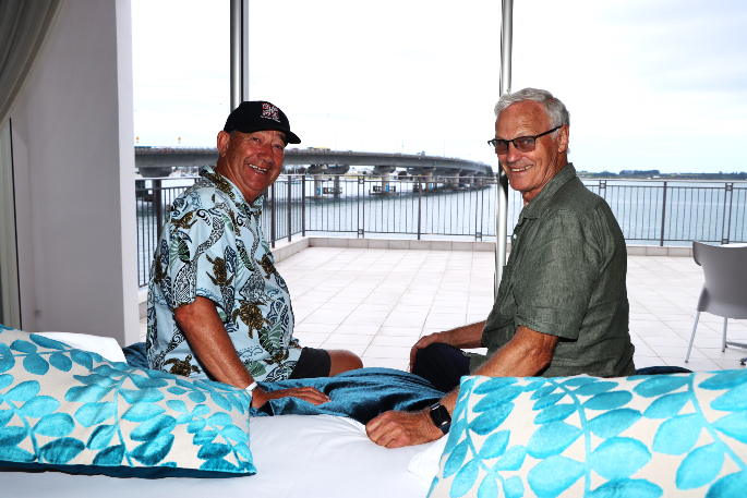 The harbour bridge, which Geoff and Shelley Payne’s company Civenco Construction Bay of Plenty helped build before they went on to build the hotel, adds to the picturesque backdrop.