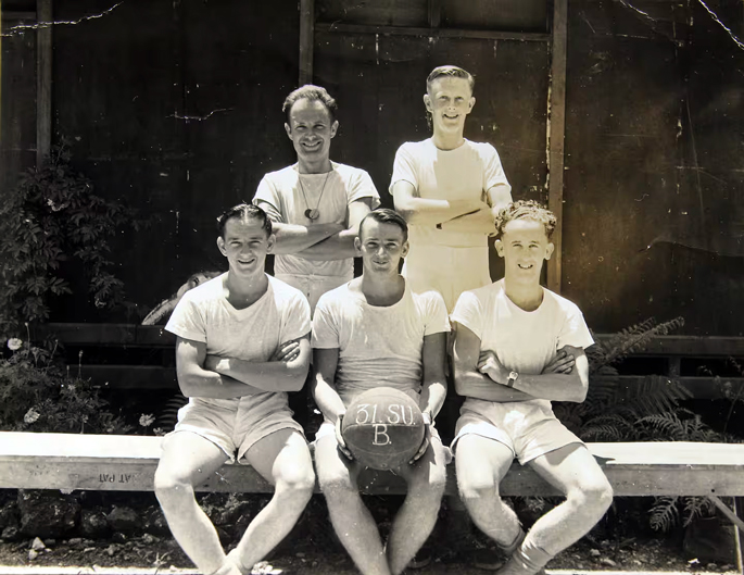 Learning basketball from the Americans in the Solomon Islands. "We were hopeless," Clive says.