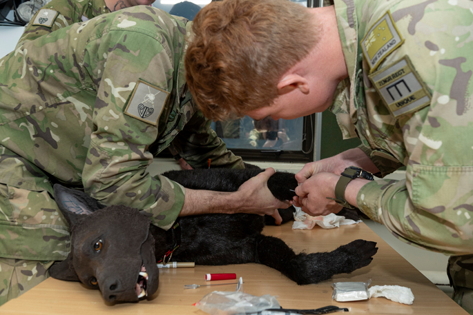 “We’re not expecting handlers to become veterinarians, but rather have the required skills to help them keep their four-legged colleague alive so that it can be transferred out to receive specialised care.”
