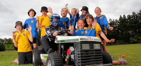 Ladies and gentlemen, start your engines for Omokoroa No1 School's nineth annual Original Ride On Mower race Day today.