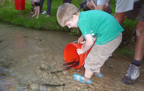 It's fun! A Tauranga Anglers Club member's child lets trout go.