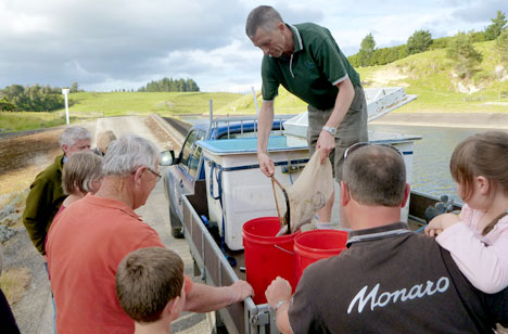 He says the Tauranga Angler's Club members as always, turned out to help with the annual release, helping carry fish by bucket from the tank on the back of a Fish & Game ute. 'We love their enthusiasm and willingness to contribute to their local fishery.”