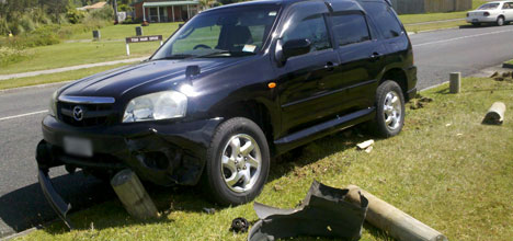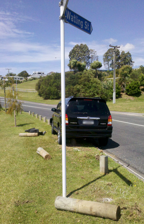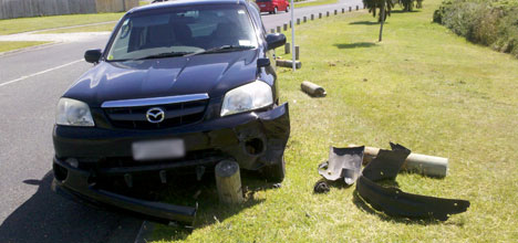 A car has crashed toppling over more than three bollards on Tom Muir Drive in Gate Pa.