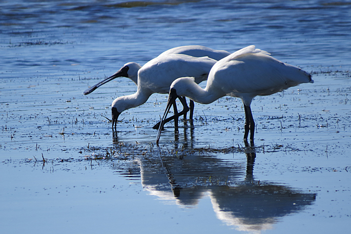 Royal spoonbills are a mobile species found in increasing numbers around New Zealand, and are identifiable through their unique bill, long black legs and white plumage.