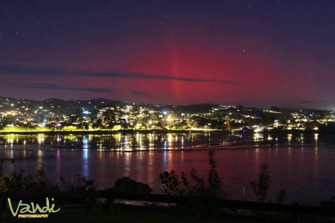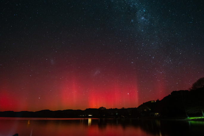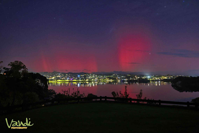 An aurora lit up Bay of Plenty skies on Sunday night, with Tauranga photographer John van den Broek capturing the striking colours from Maungatapu.