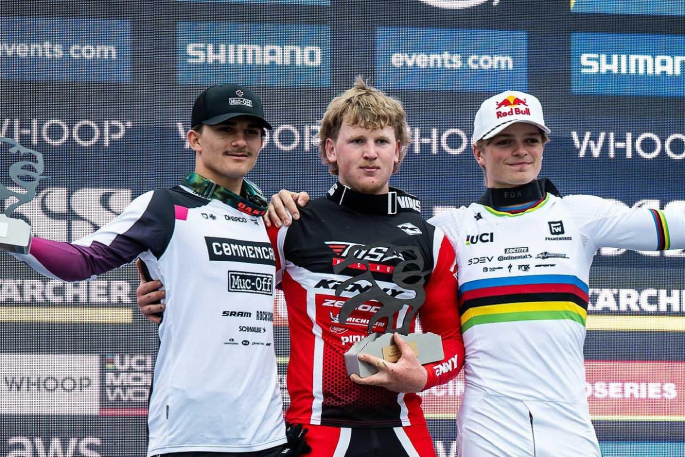 New Zealand downhill riders were on fire at the UCI World Series at Leogang in Austria with top-five placings in each of the four championship classes, topped by victory in the junior men.