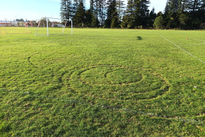 Damage on Neil Hunt Park's main football field. Photo / Mathew Nash