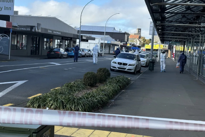 Police had Alexandra St cordoned off this morning. Photo / Victor Waters, RNZ