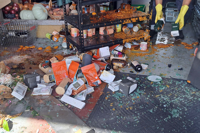 Some of the damage to Te Puna Deli after a car drove through the front entrance. Photo / Sandra Conchie