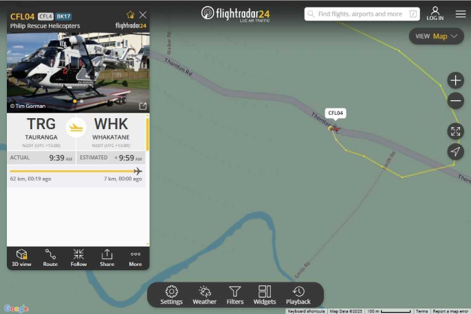The Philip Rescue Helicopter shown on Flightradar24 at the scene. Image / Flightradar24.