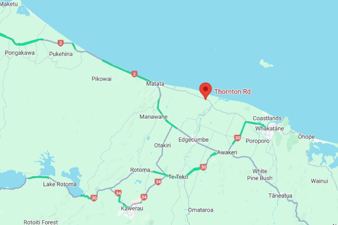 Map showing Thornton Rd, Bay of Plenty. Image / Google Maps.