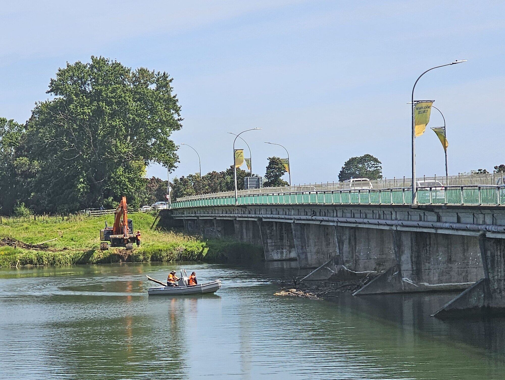 Built up debris was being cleared from underneath Whakatāne Bridge this week.