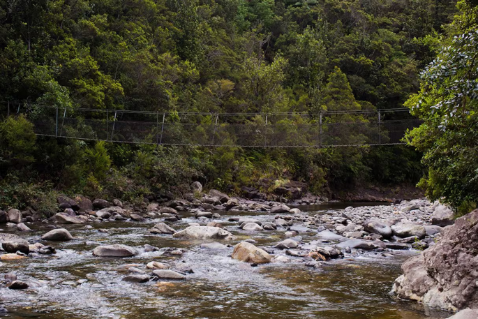 The Pinnacle Track swing bridge, near Kauaeranga Valley. Photo / Russell Street