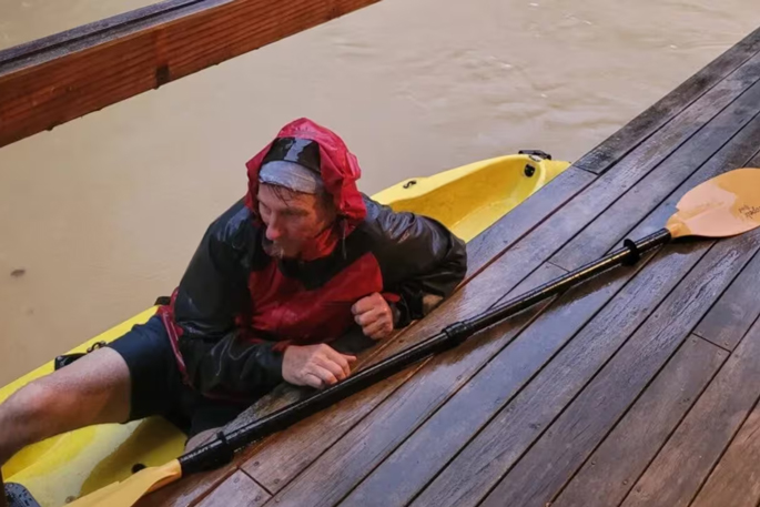 Brave dad saves family from flooded home in kayak