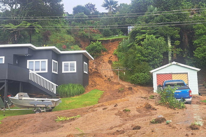 Police said they were notified 4.15am that a slip had extensively damaged a house on Welcome Bay Rd.