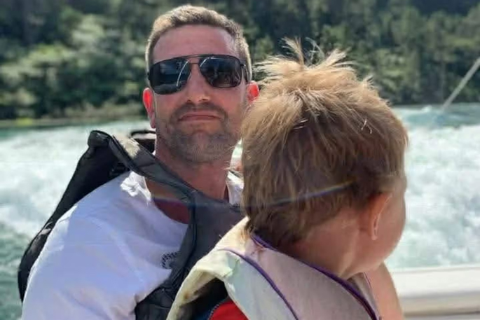 David Roe, pictured with his youngest son, fell from his boat in the Waioweka River last Friday. Photo / Supplied