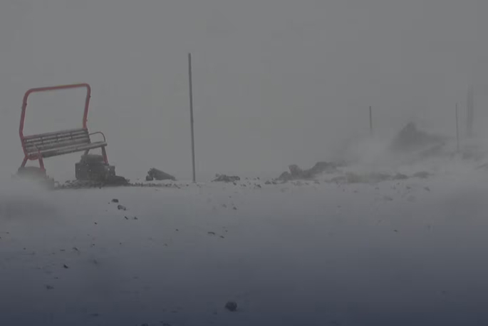 Photos from the base of Mt Hutt ski area show a fresh dumping of snow, with thick cloud wrapping around the slopes, conditions more commonly seen in winter, when the area is packed with skiers and snowboarders.
