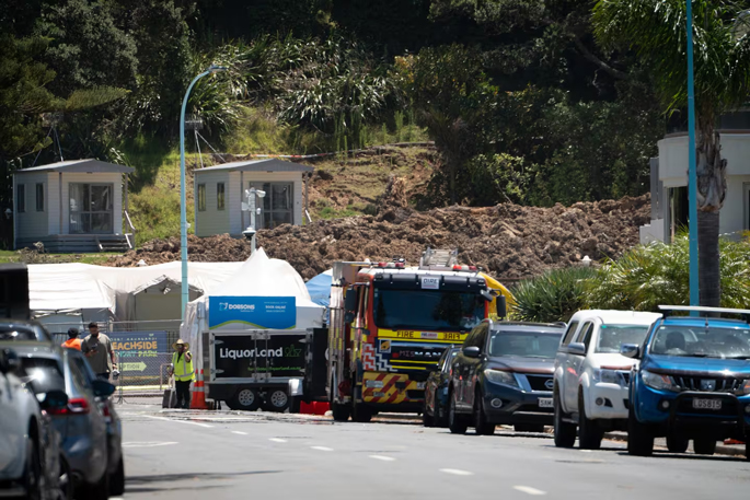 Members of the public paid respects at the Pilot Bay police cordon set up after a tragic landslide at a campground in Mount Maunganui. Photo / Anna Heath Members of the public paid respects at the Pilot Bay police cordon set up after a tragic landslide at a campground in Mount Maunganui. Photo / Anna Heath