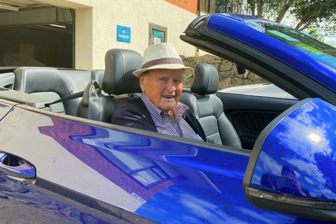 Rotorua’s Ivan Deadman turned 100 this week - and he’s still driving his Mustang convertible.