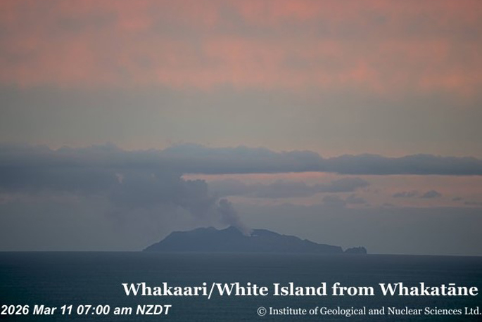 GeoNet’s coastal cameras at Whakatāne and Te Kaha have shown low-elevation plumes this week that occasionally appear larger or change colour because of shifting atmospheric conditions.