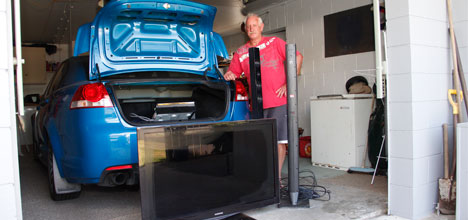 Jim says the man was attempting to steal his new Holden car, filled with items from his downstairs flat.
