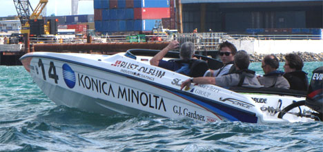 The offshore racers mixes big and small boats on the same course which means the co-driver is kept busy, says Shane Rumens, the co-driver on the Konica Minolta boat.
