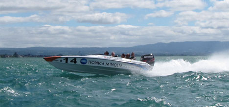 Konica Minolta testing the Tauranga water.