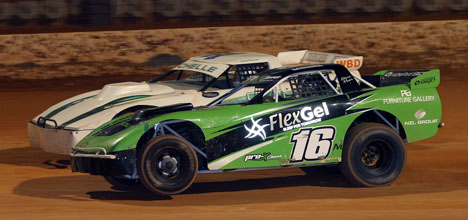 18M Stock Car Joseph Carter argues track position 35M Eben Young.