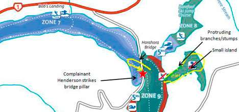 According to the summary of facts a second incident occurred a short time later as Willis was towing a female rider under the nearby Horahora Bridge, going at well in excess of the five knot speed restriction in that area.