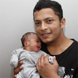 Taylor Dickson and Matthew Burns welcome their son Wiremu Rauhuhu Rikihana weighing 3760g (8lbs 5oz) on April 12. |