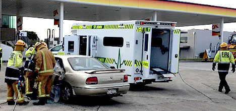 Emergency services were called to the petrol station on Cameron Road around 11.15am where the female passenger of a vehicle was trapped following a collision with another car.