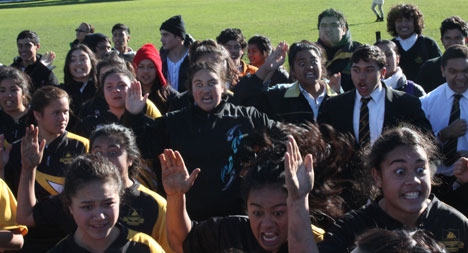 A game Whakatane High School side was joined by their school mates for an impromptu post-match meerting of hakas.