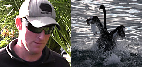Footage, first aired on Campbell Live in March, shows four people in a jet boat intentionally ploughing into black swans.