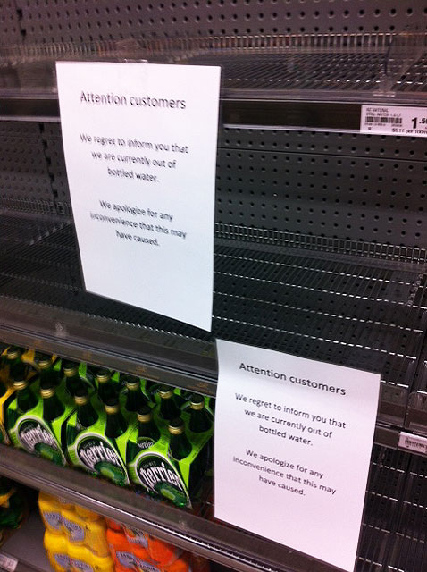 At 7.30am Rebecca went to Countdown where there were only 12 bottles of water left in stock.