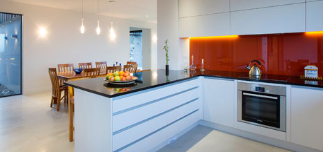'Clean, crisp lines continue throughout the interior of the home with immaculate finishing and perfect attention to detail. Clear and concise workmanship was crucial to the client's brief of a minimalist home, which the builder has achieved to a very high standard.”