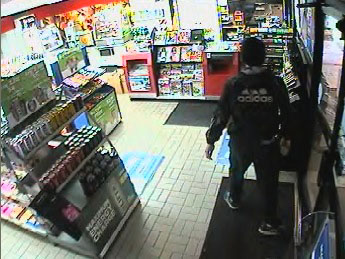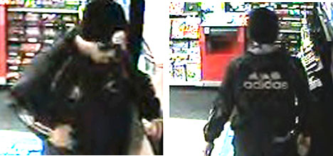 'He [the offender] is described as a male Caucasian, in his early 20s, of medium height and medium build. He was dressed in a dark coloured, long sleeve hoodie, with Adidas on the back. He had black jeans, with black and white shoes, and dark coloured beanie and sunglasses.”