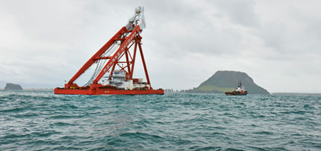The A frame on the crane barge will be swung forward over coming days.