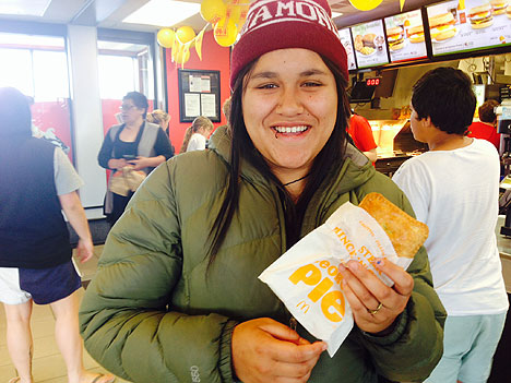 Taylah Kapene from Mount Maunganui enjoys a Georgie Pie.