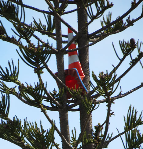 Traffic cone on Pilot Bay. By Chris Wilson.