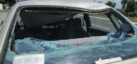 'The roof is all smashed in and made the rear windscreen break. There is broken glass all over the car seats and the car. The person didn't leave a note either,” says Melissa's friend Maria, who spoke to SunLive under the condition her last name was not used.