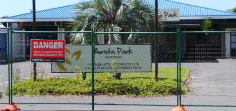 The Bureta Park Motor Inn is fenced off ready for demolition.