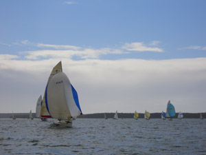 | The fleet under spinnaker. |