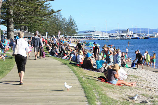 Pilot Bay was a hive of activity on Tuesday evening as thousands turned out to enjoy the seaside. Photos: Mount Mainstreet.