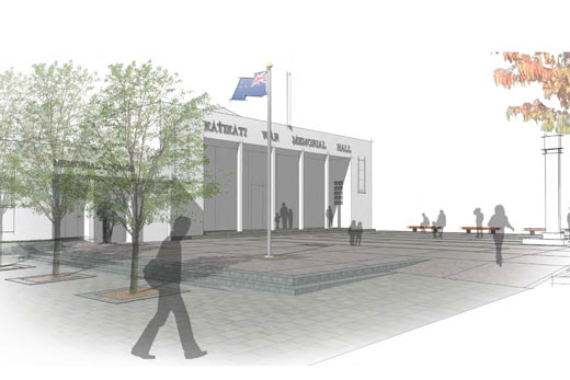 Following a blessing by local iwi on January 31, work is now beginning on the memorial hall area by bringing large format paving to the road edge, making three rectangle basalt bands with inscriptions and repositioning trees to create a Memorial Square in front of the hall, with disabled parking. The work is expected to be finished by March 20.