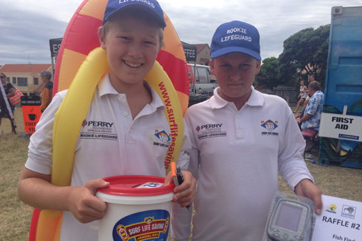 Papamoa Surf Club members Saffron O'Donnell 11, Jemima Pol, 10, Erin McCarthy, 9, helping with raffles today at the Waitangi Day Community Fair.