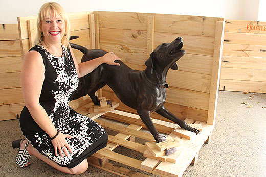 Brigitte Wuest's bronze sculpture Bottomley Potts all covered in spots was trucked up to Tauranga from Wellington yesterday, courtesy of PBT Limited.