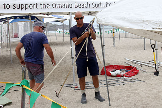Surf Life Saving NZ equipment logistics manager, Alan Coates, was first on the scene 10 days ago, overseeing the arrival of the portacom buildings and the tower, arriving before dawn most mornings to limit the impact on the general public using the beach.