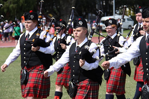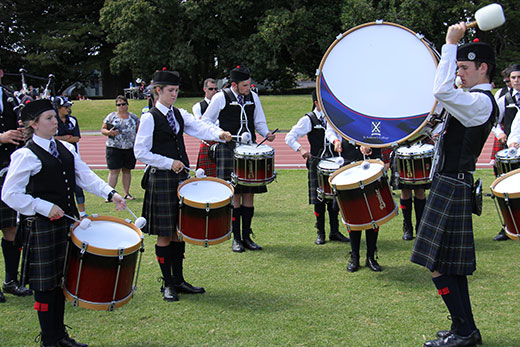 A pipe band taking part in the Grade 4 march along Durham and Spring streets. Photos: Luke Balvert.