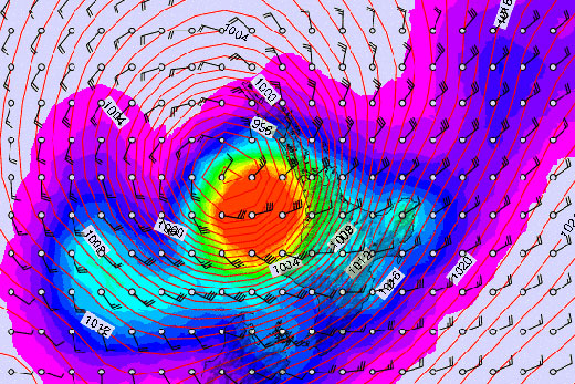 The eye of the storm is now predicted to pass down the North Island west coast. Earlier forecasts had the storm centre coming down the east coast and crossing over to the Taranaki bight at Auckland or Northland.