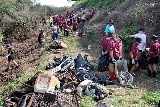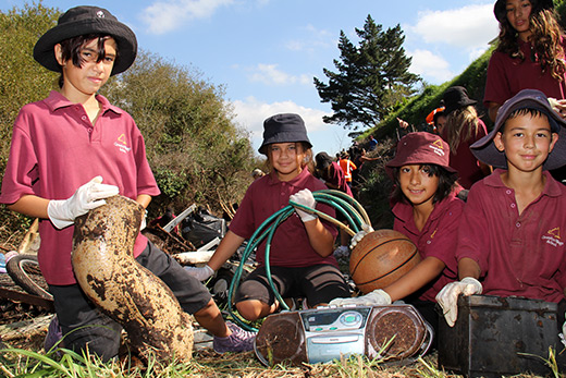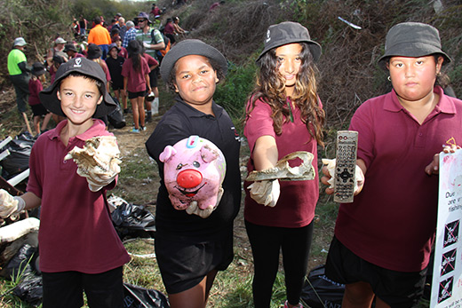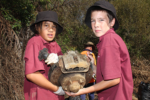 More than 10 tonnes of unwanted rubbish has been cleared from the Wylie and Jones St Reserves in an operation involving more than 300 children from Gate Pa School, Greerton Village School and Greenpark School.